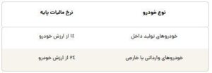 نرخ مالیات برای خودروهای داخلی معمولاً ۱٪ و برای خودروهای وارداتی ۲٪ است.