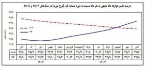 از سوی دیگر، نرخ تورم نقطه به نقطه (در مقایسه با ماه مشابه سال قبل) در آبان ۱۴۰۴ به حدود ۴۷.۶ درصد رسیده که بالاترین میزان در ۱۲ ماه اخیر است، در حالی که این نرخ در آبان ۱۴۰۳، ۳۵.۹ درصد بود.